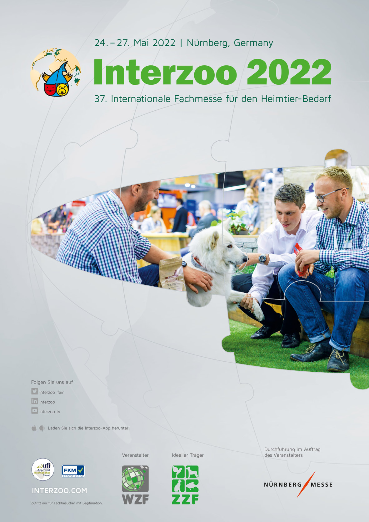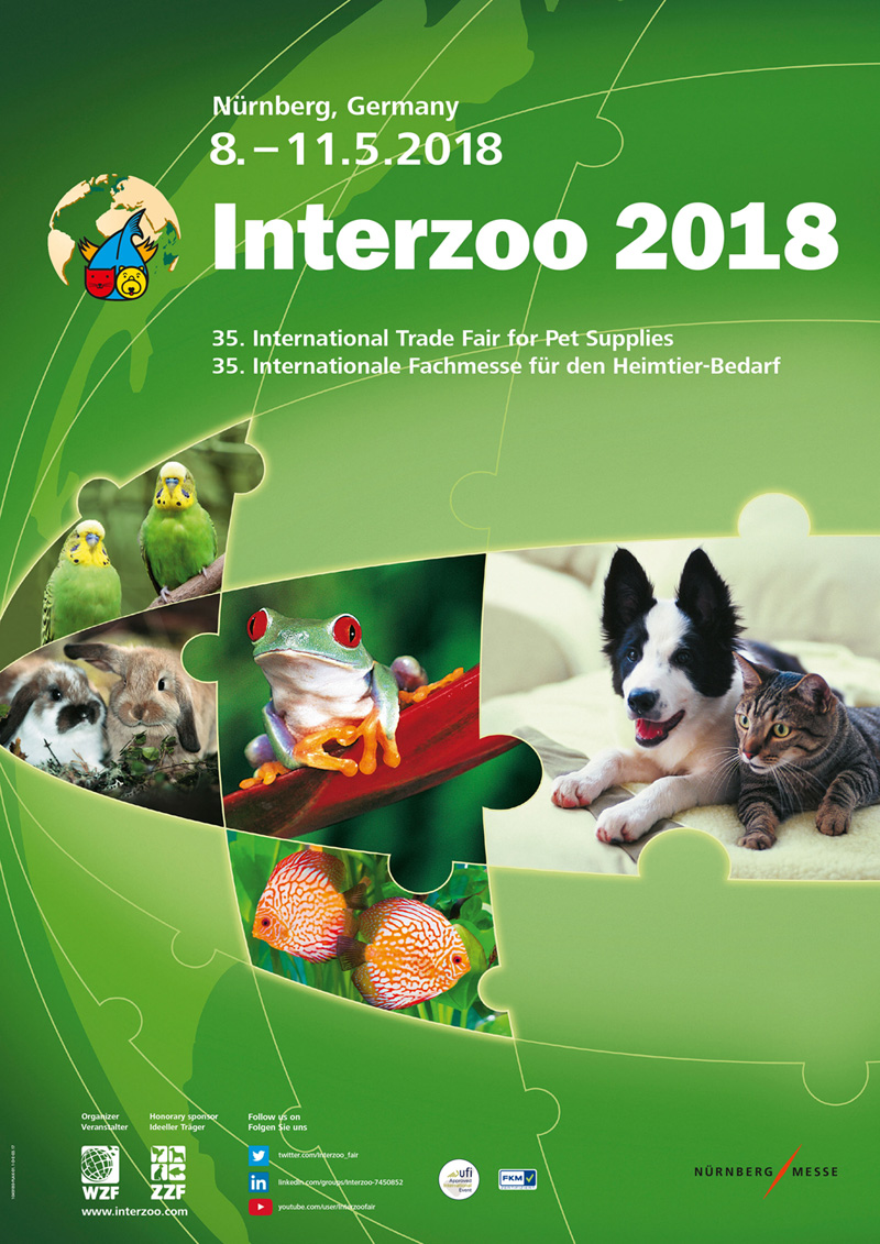 Interzoo 2018 Visit us at tradefair Interzoo 2018 in Nürnberg / Germany - International Trade Fair for Pet Supplies 08.-11.05.2018 More information here or send a mail to Claudia Fleck-Witte (claudia.fleck-witte@k-r-witte.de ) Quelle: https://www.interzoo.com/en |
